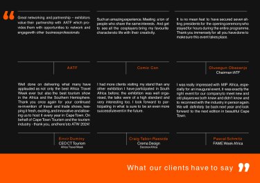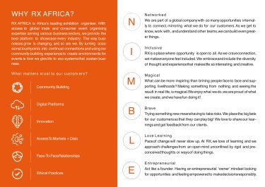 While proudly rooted in RX Africa, we work across industries, with various organisers, venues, and clients, forging neutral, collaborative partnerships to bring every vision to life.